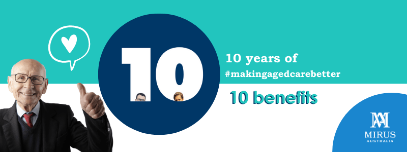 Mirus Australia is celebrating our 10th anniversary in 2020 or how we like to say it: 10 years of #makingagedcarebetter. The team at Mirus passionately work alongside their colleagues and peers in aged care facilities and with committed individuals all around Australia. Recently our business intern at Mirus, Zoë compiled this list of the top 10 reasons to choose residential aged care.