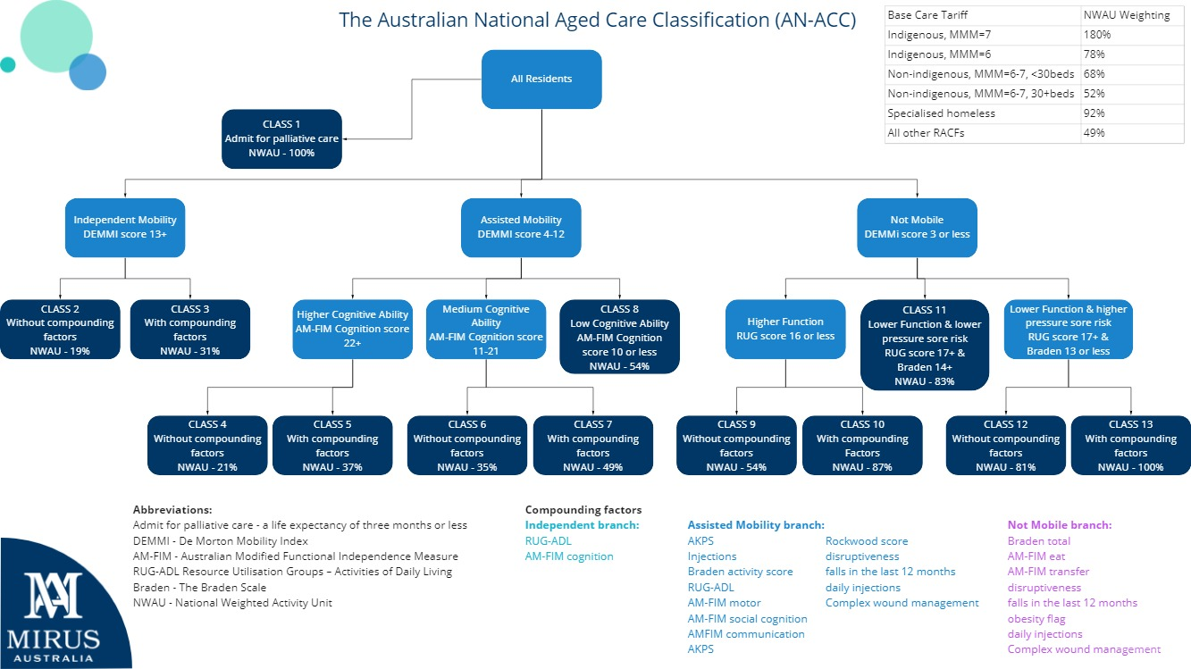 The AN-ACC calculator on Mirus’ website allows for adjustment to the NWAU assumption and the facility type. On-demand AN-ACC reporting available in Mirus Metrics assumes an NWAU of $198 and a facility type of ‘All other RACFs’.