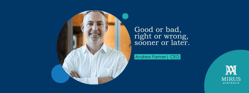 Andrew Farmer is the Chief Executive Officer at Mirus Australia. Andrew drives our strategy which is based on our priorities of growth, focusing on our core value and the future of Mirus Australia. Our vision is to play an essential part in shaping the future of a world-class aged care industry.